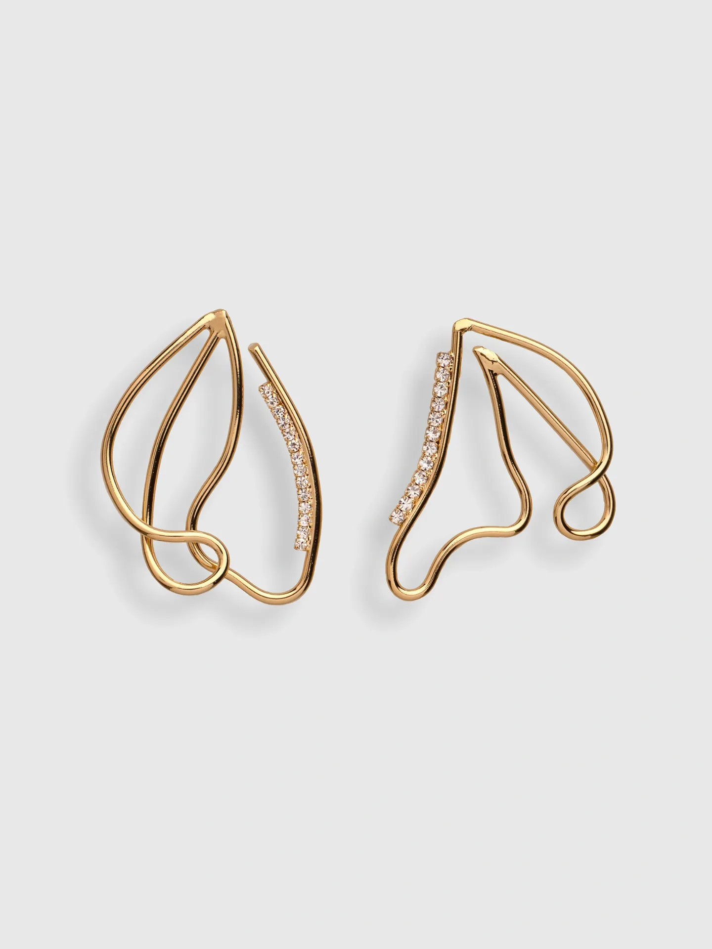 Asymetrické náušnice ve tvaru organických květů.one piece onlyVelikost: 7 cmZapínání: titanové puzetyMateriál: zlacená mosaz, Preciosa crystals