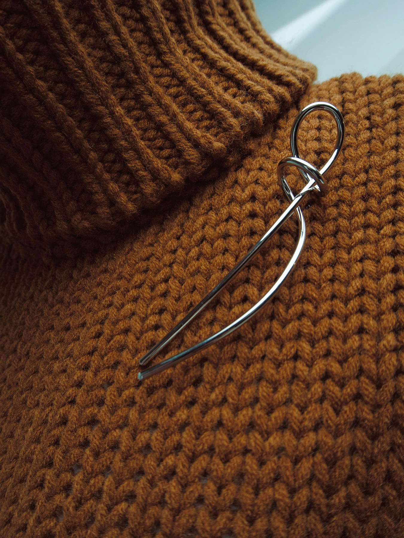 Minimalistická brož ve tvaru nedokončeného uzlu, smyčky