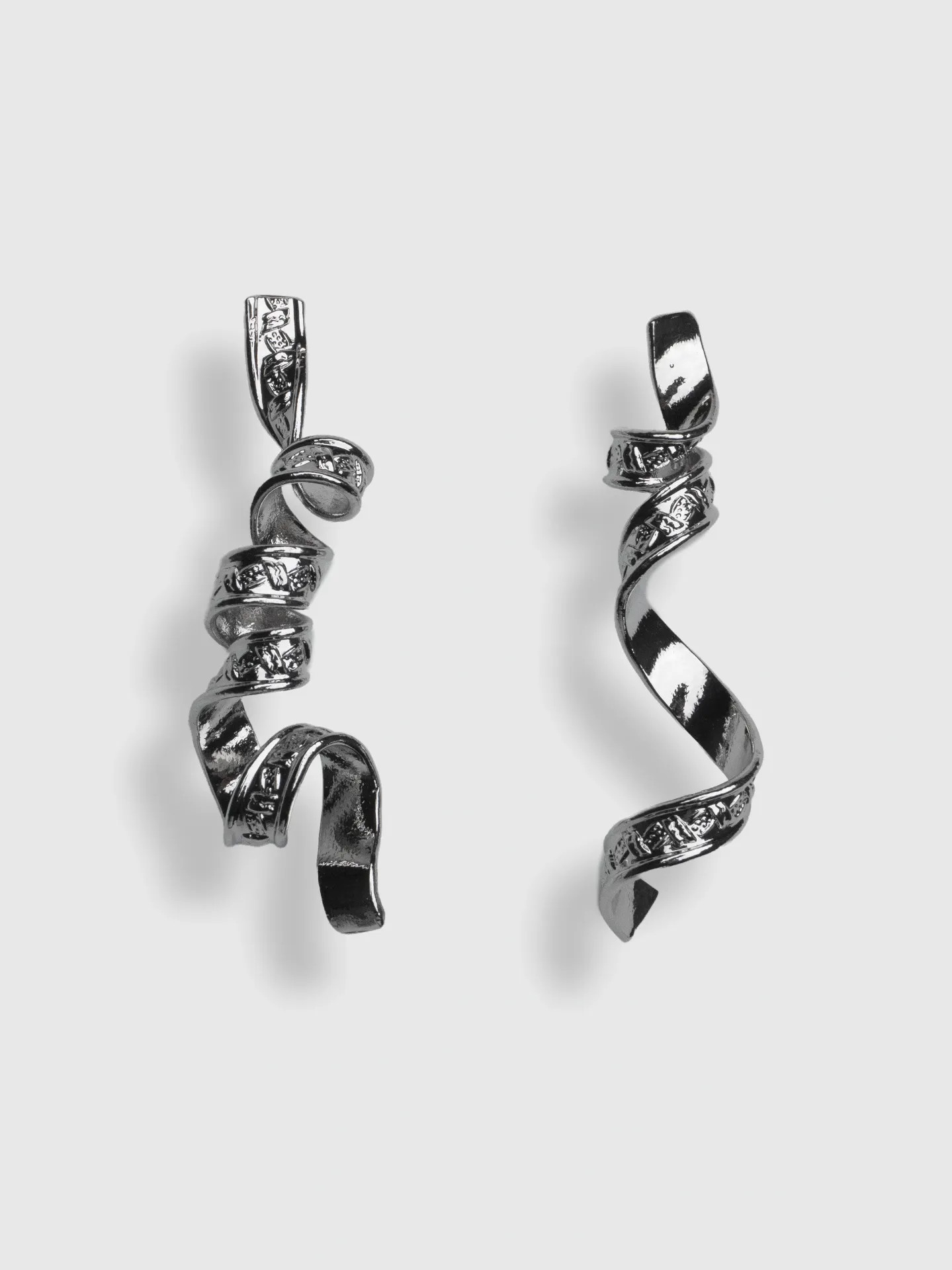 Elegantní asymetrické náušnice ve tvaru kroucené stuhy s reliéfním vzorkem